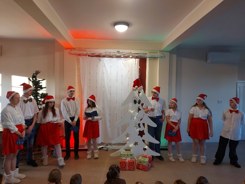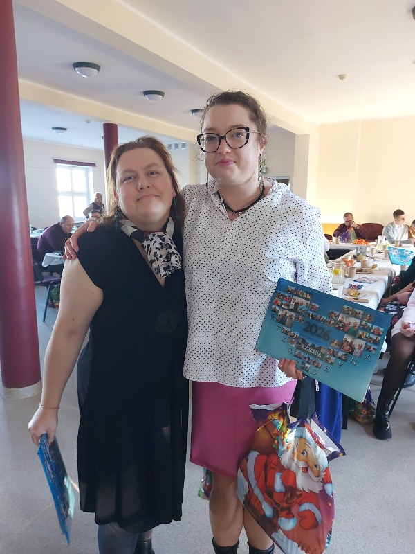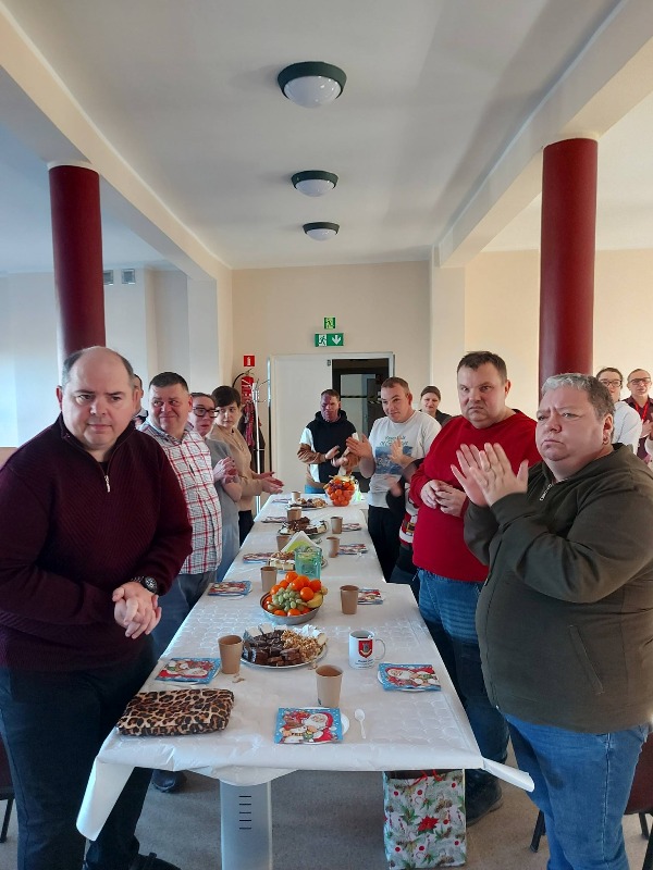 Oczywiście nie mogło zabraknąć przepysznych słodkości, a pod choinką pojawiły się prezenty przywiezione przez Gwiazdora. Wspólnie spędzony czas przepełniony był radością, życzliwością, śpiewem kolęd oraz życzeniami, tworząc wspomnienie pełne ciepła i wzajemnego zrozumienia. Spotkanie było okazją do podsumowania mijającego roku oraz do wzmocnienia więzi, które łączą całą społeczność WTZ.